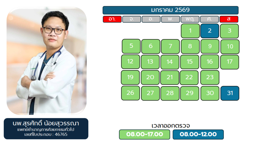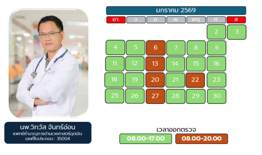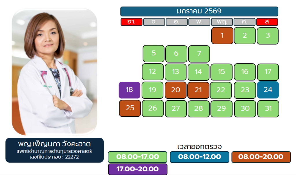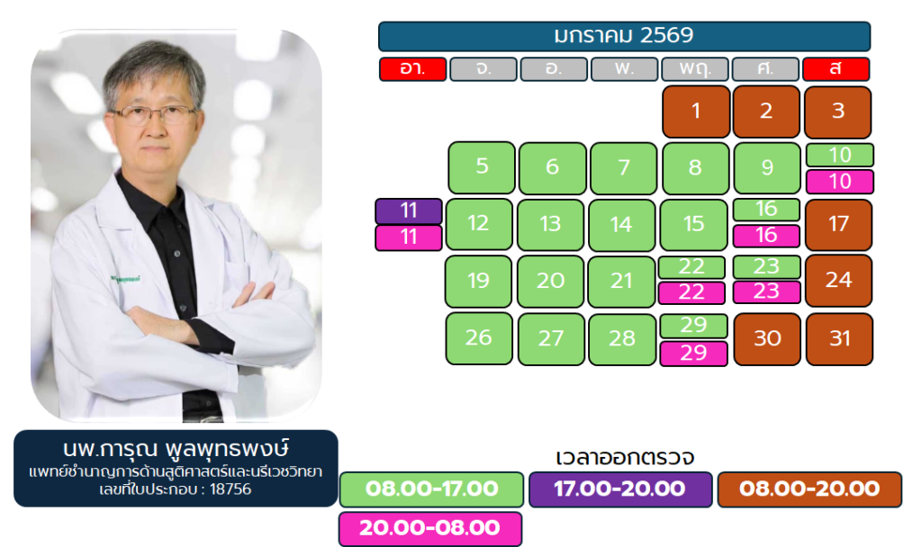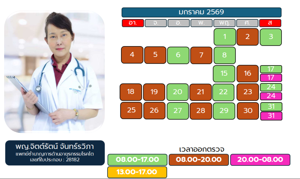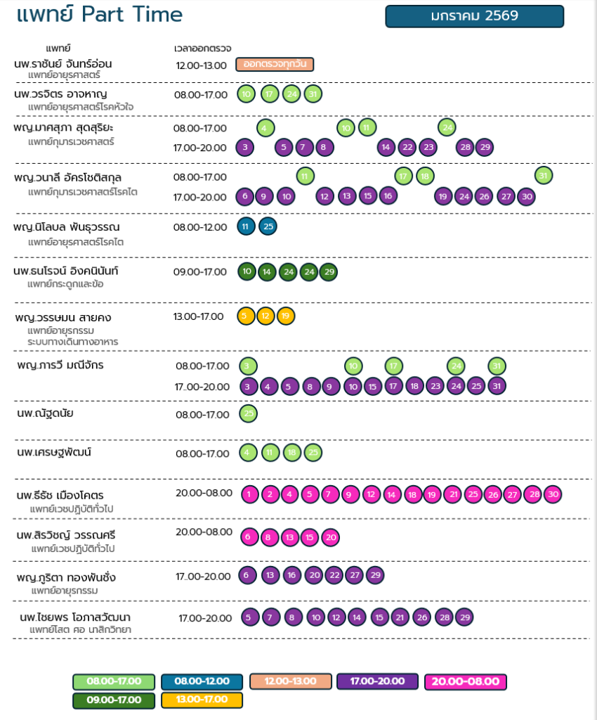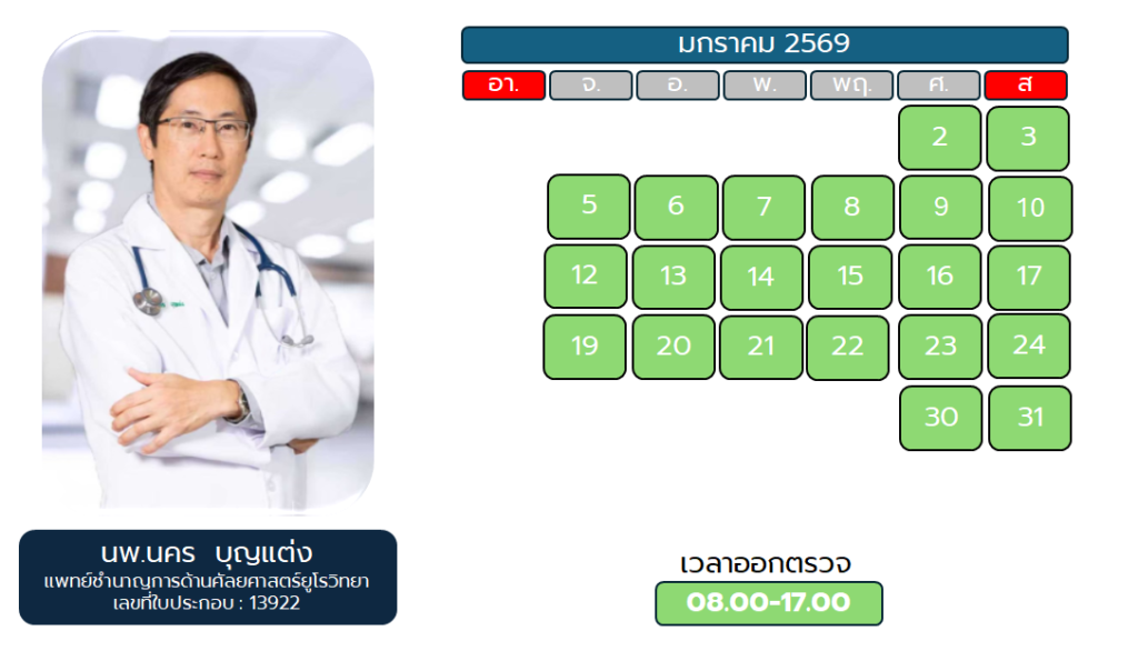 *ตารางออกตรวจแพทย์อาจมีการเปลี่ยนแปลง สามารถติดต่อสอบถามได้ที่เบอร์โทร 042-611222