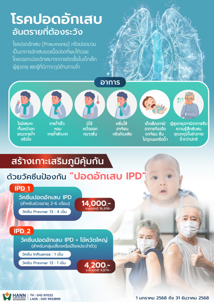 สร้างเกราะเสริมภูมิคุ้มกัน ด้วยวัคซีนป้องกันโรคปอดอักเสบ เพื่อดูแลสุขภาพคุณและคนที่คุณรัก โรคปอดอักเสบ หรือที่เรียกว่า “ปอดบวม” เกิดจากสาเหตุของการติดจากเชื้อแบคทีเรียส่วนใหญ่ ที่เรียกว่า เชื้อ Streptococcus pneumoniae ซึ่งมีกว่า 90 สายพันธุ์ ไม่เพียงเท่านี้เชื้อนี้ยังสามารถก่อให้เกิดโรคอื่นตามมาได้อีก ได้แก่ การติดเชื้อที่เยื่อหุ้มสมอง และการติดเชื้อในกระแสเลือด ซึ่งโรคปอดอักเสบนี้ปัจจุบันสามารถเสริมภูมิคุ้มกันได้ด้วยการฉีดวัคซีนป้องกันโรคปอดอักเสบ (Pneumococcal vaccine)